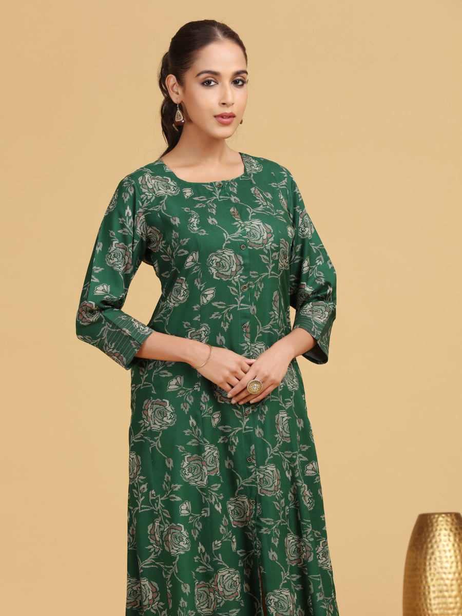 Green Yarndyed Pattern Straight Kurta