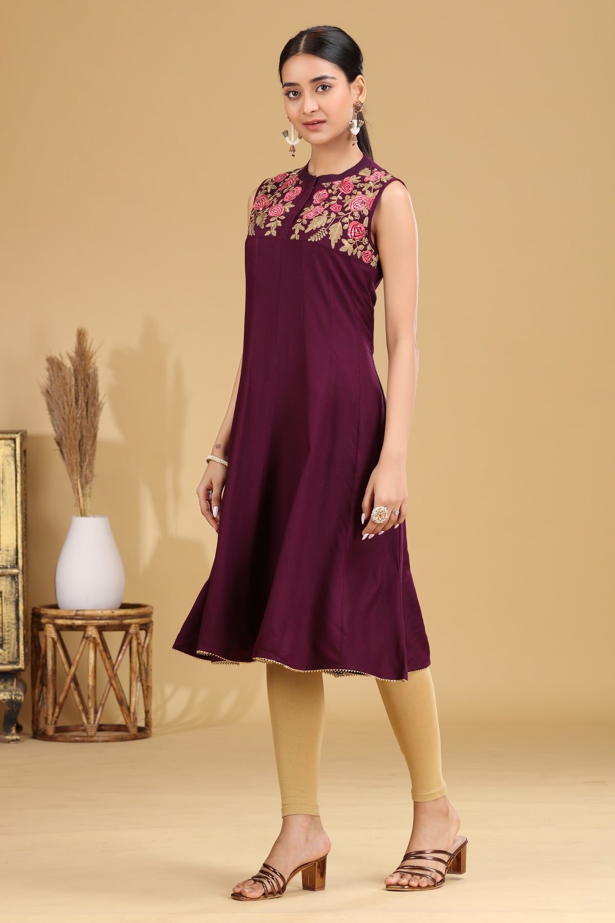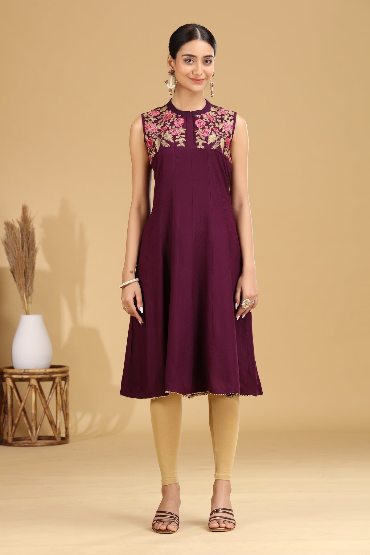 This purple A-line dress combines timeless elegance with artisanal embroidery work. The carefully designed silhouette flatters various body types while the premium cotton fabric ensures comfort throughout the day. Hand-embroidered details add depth and character, reflecting authentic craftsmanship. The versatile cut makes it suitable for multiple occasions—from professional settings to social events. The breathable material keeps you cool in warm climates, while the structured A-line shape provides a polished appearance. An investment piece that pairs effortlessly with accessories for endless styling possibilities.