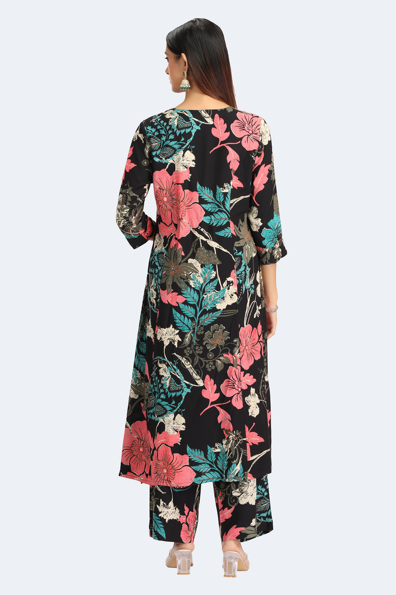 Black Rayon Printed Straight Kurta Pant Co ord Set