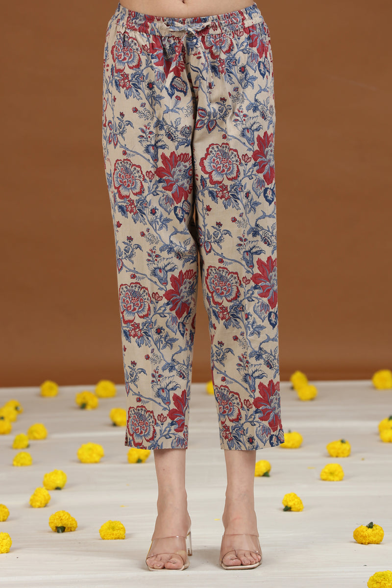 Off White Floral Printed A-Line Cotton Co-ord Set