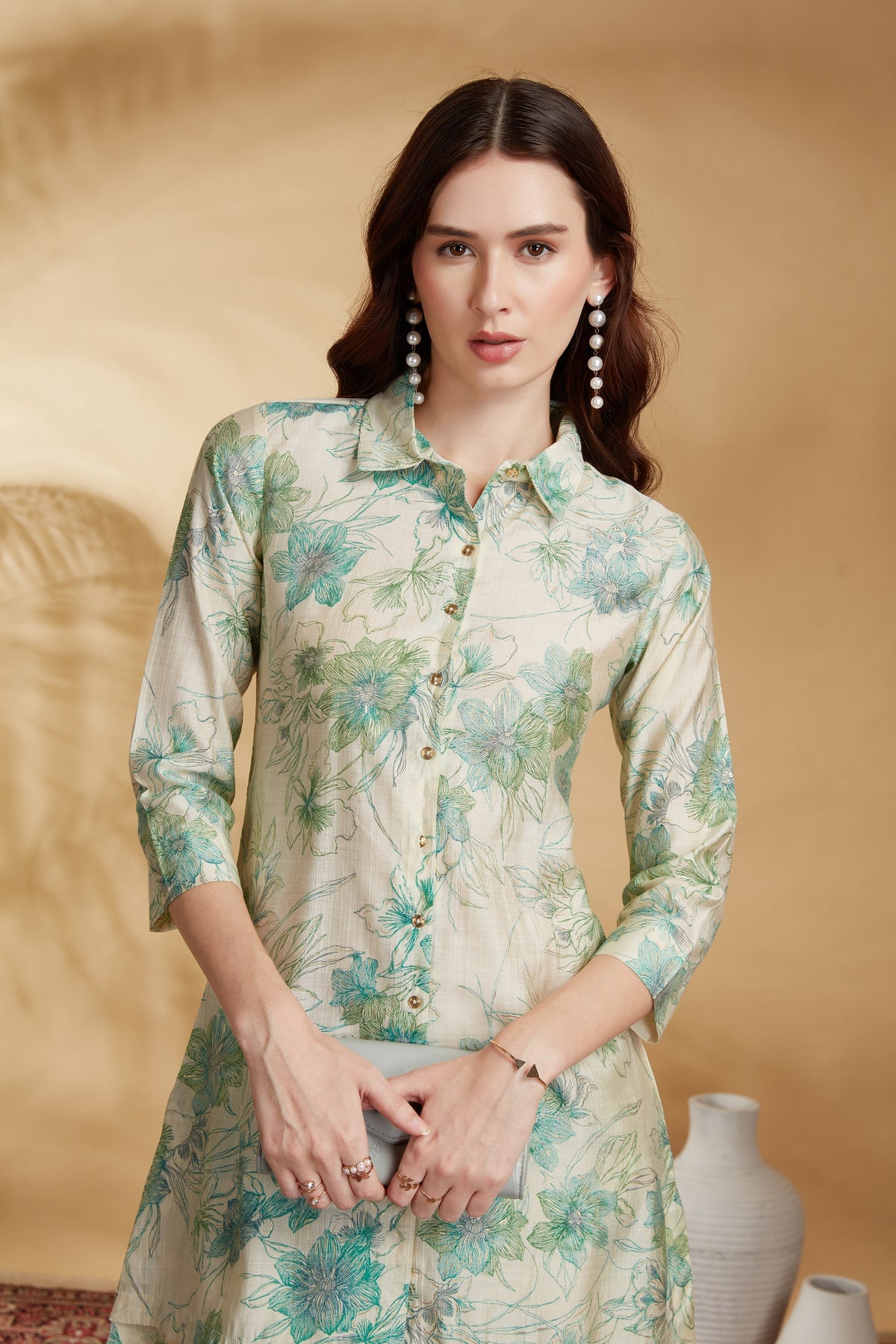 Embrace understated elegance with this meticulously crafted off-white viscose co-ord set. The printed kurta and coordinating straight pants represent a masterclass in balanced design neither ornate nor austere, but precisely calibrated for the discerning aesthetic. Viscose fabric provides a refined sheen and exceptional drape, creating an silhouette that moves with natural grace. The neutral off-white foundation allows your personal style to flourish, whether adorned with traditional embellishments or contemporary accessories. The straight cut ensures a flattering, timeless profile suitable for diverse occasions. An investment in quiet sophistication that rewards thoughtful styling and enduring wear.