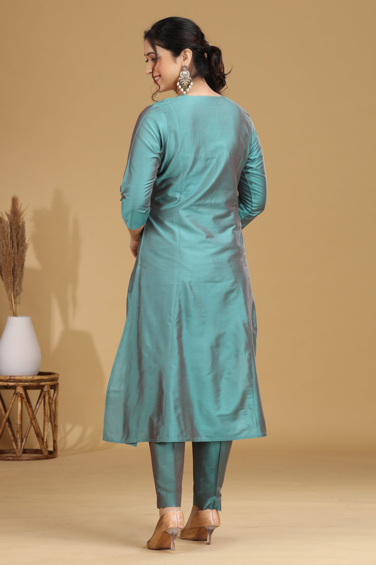 Experience easy, effortless style with this Turquoise Motif Embroidered Straight Co-ord Set from Cotton Culture. The turquoise embroidery stands out beautifully, blending classic Indian craftsmanship with a modern, clean silhouette. The straight-cut fit keeps the look polished and comfortable, making it perfect for everything from festive gatherings to casual outings.