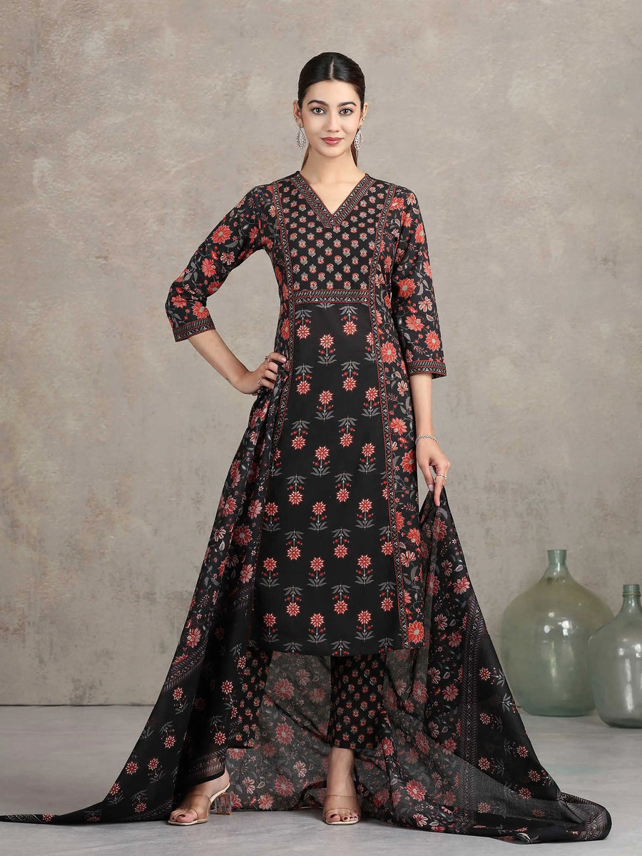 Black Floral Printed A-Line Ethnic Set