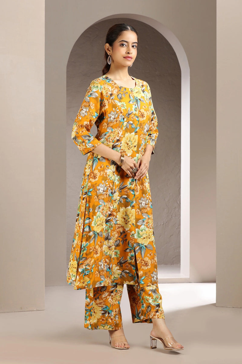 Mustard Rayon Printed Straight Kurta and Pant Set
