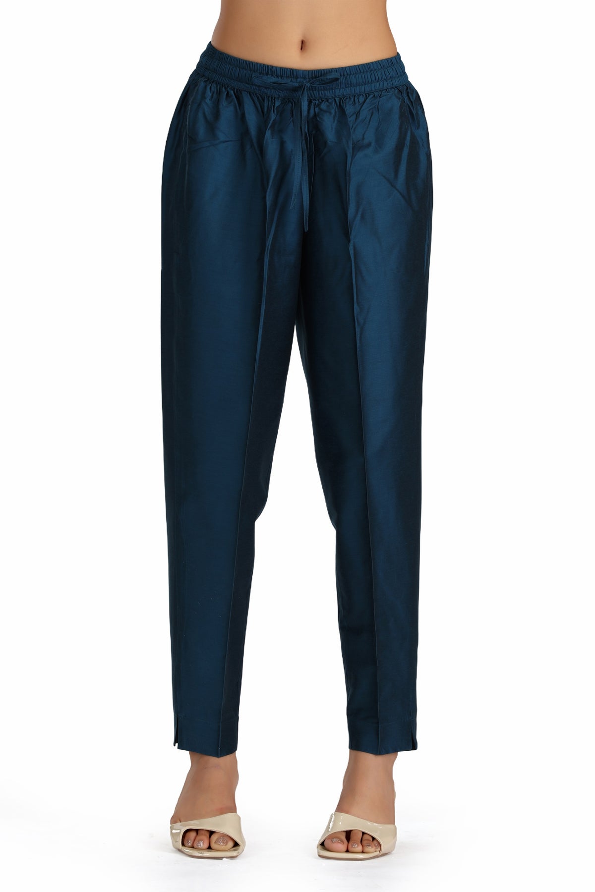 Experience elegance with the Teal PolySilk Embroidered A Line Kurta Pant and Dupatta Suit Set from Cotton Culture. Crafted from premium poly silk, this set offers a smooth, lustrous finish combined with intricate embroidery for a refined look. The A-line kurta ensures a flattering silhouette, while the matching pants and dupatta complete the ensemble with coordinated sophistication. Ideal for festive occasions or formal gatherings, this set balances comfort with style, elevating your wardrobe with timeless grace.