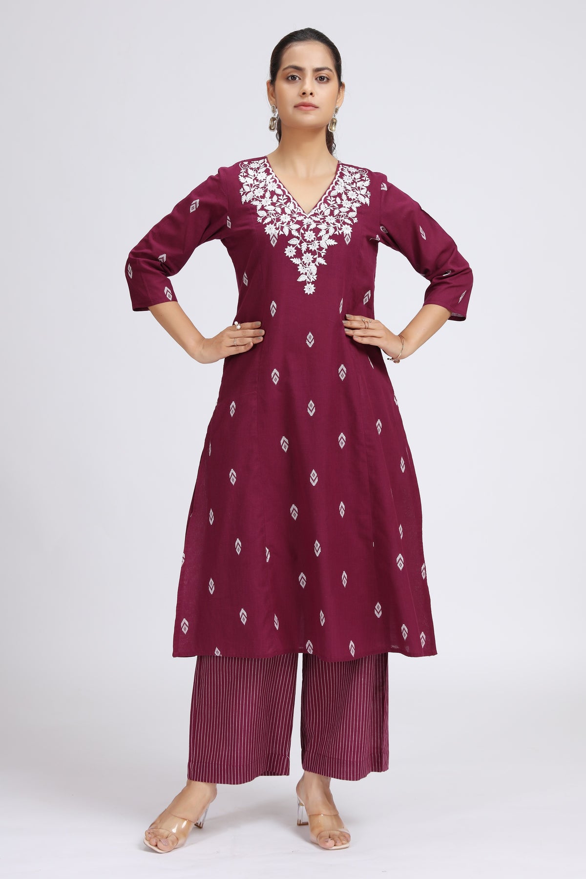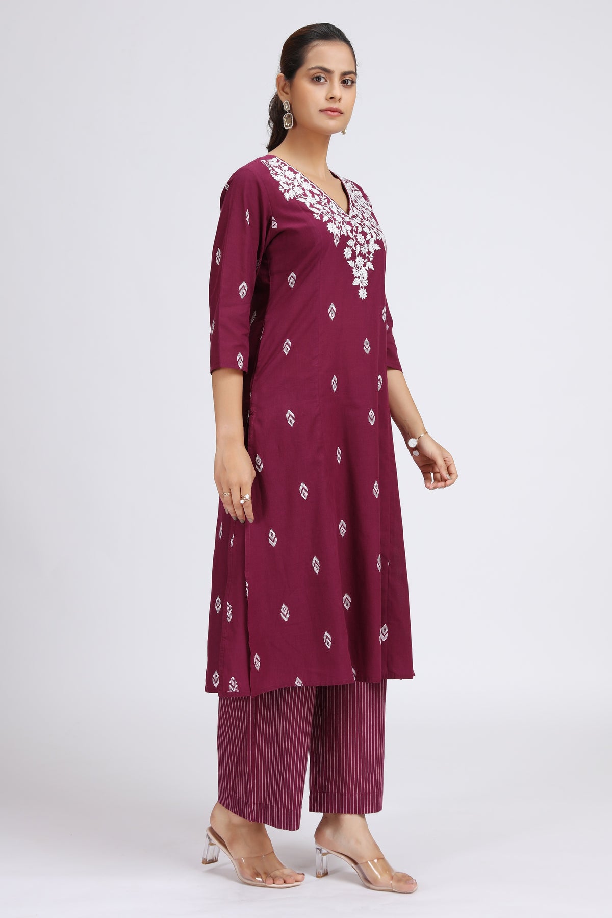 Bring home the beauty of traditional craft with this Purple Handloom Embroidered A-Line Kurta and Pant Set. Made with care and detailed embroidery, it blends comfort with elegant style. The A-line kurta gives a flattering shape, and the matching pants make it easy to wear all day. Perfect for festive events, cultural functions, or classy casual outings, this set beautifully combines handloom charm with a modern touch.
