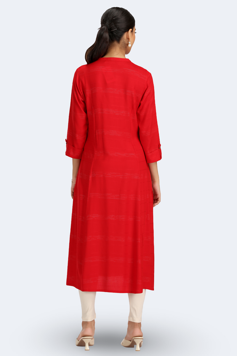 Red Jari Stripe Solid A Line Kurta