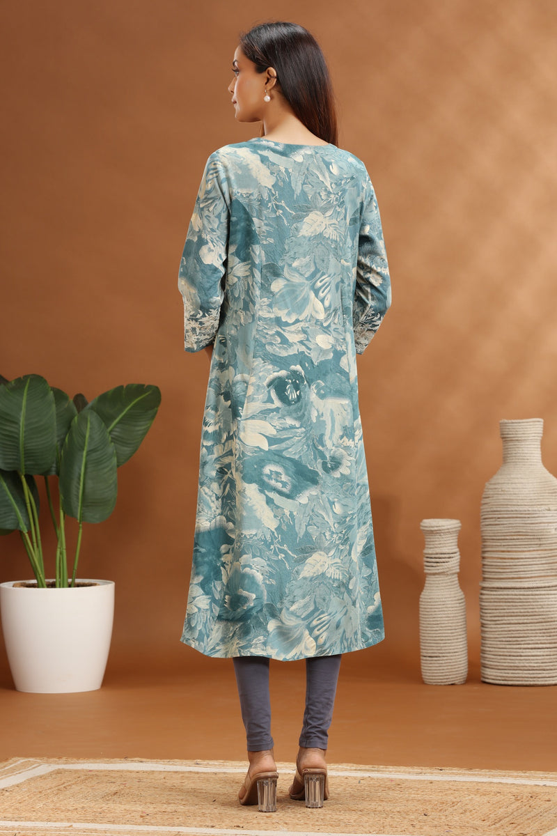 Sea Green Jaipuri Cotton A Line Printed Kurta