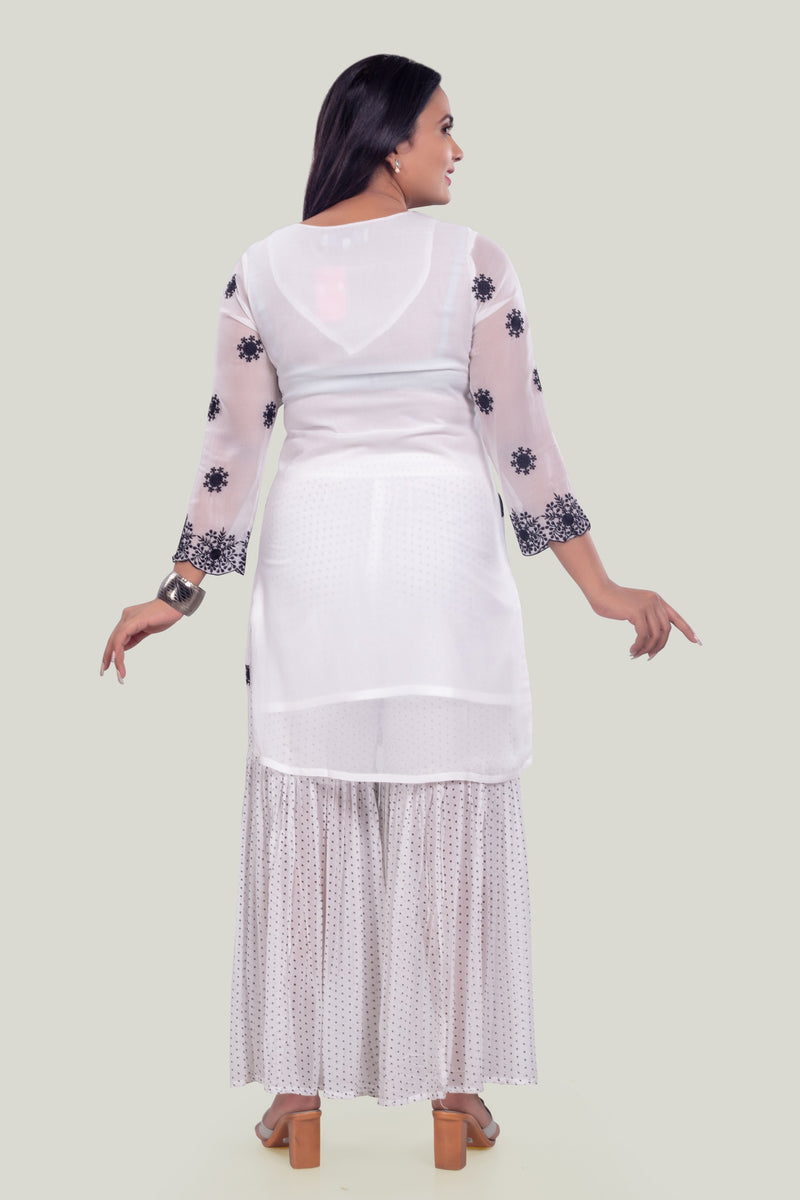 White Georgette Straight Embroidered Kurta Palazzo Suit Set