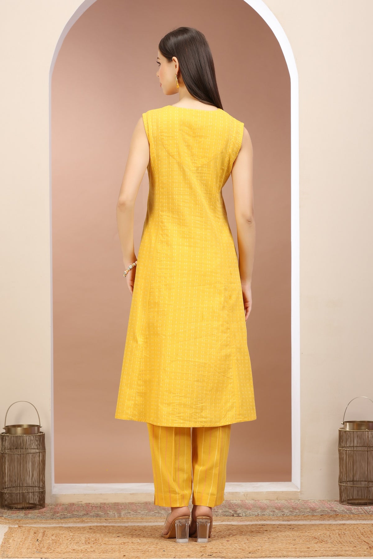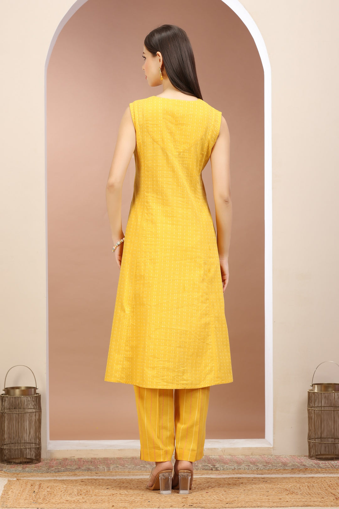 Yellow Handloom A Line Embroidered Kurta Pant Co ord Set