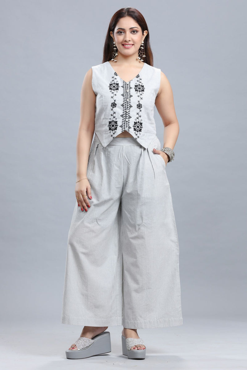 Step out in style with our White Cotton Embroidered Tunic Pant Co-Ord Set. Made from soft and breathable cotton, this set features delicate embroidery details that add an elegant touch. Perfect for any occasion, it offers both comfort and sophistication. Update your wardrobe with this versatile and fashionable set now!