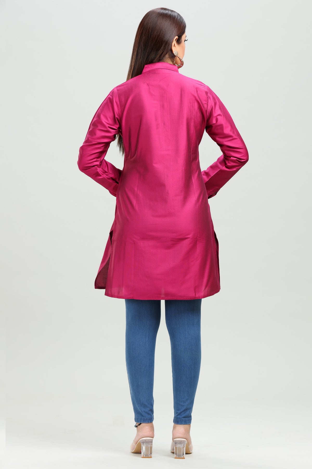 Indulge in the luxurious feel of our Rani Pink PolySilk Straight Embroidered Kurta. Made from soft and smooth PolySilk fabric, this kurta features delicate embroidery for a touch of elegance. Perfect for any occasion, this kurta is sure to make you feel confident and stylish.