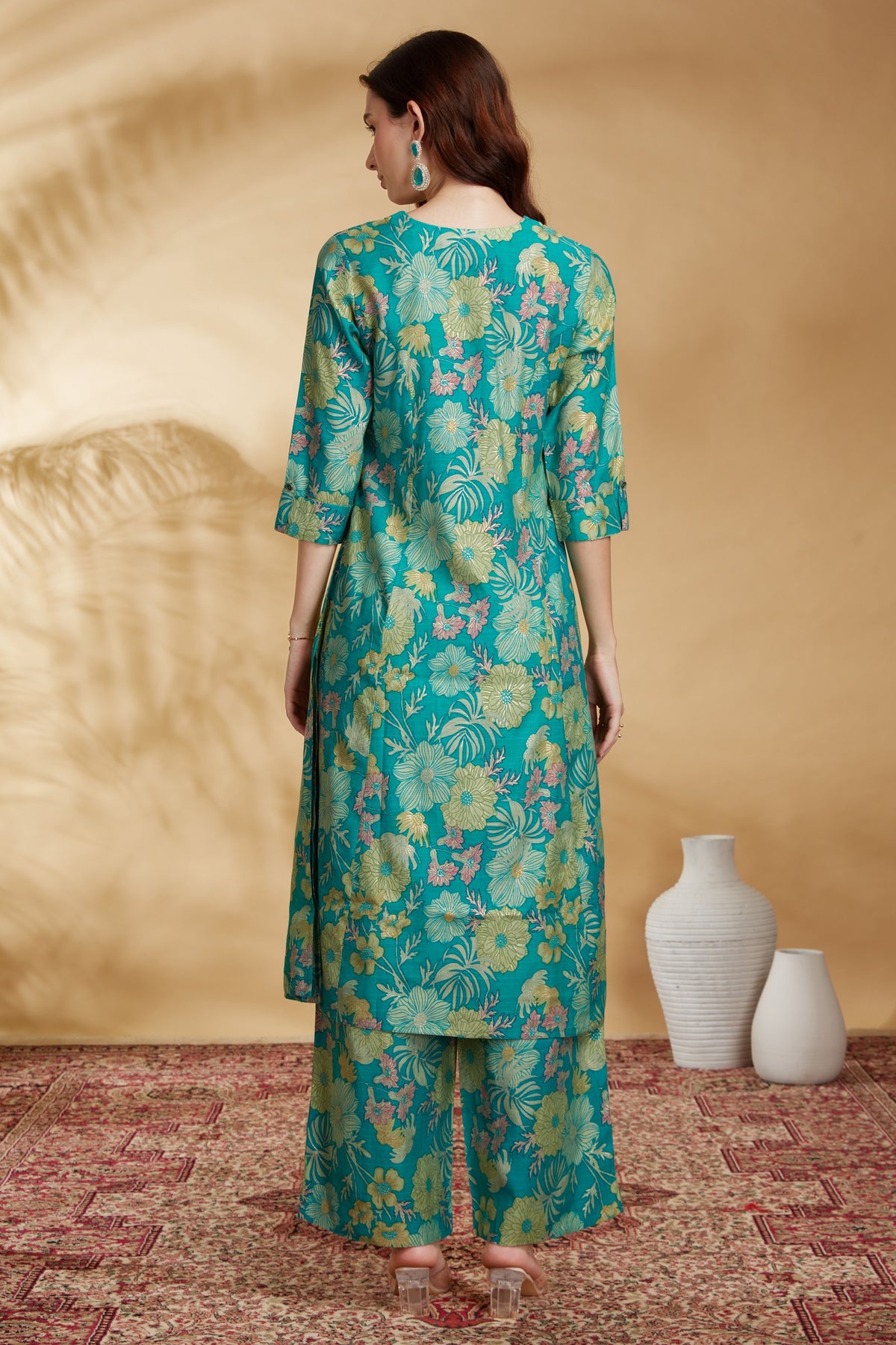 Sea Green Viscose Printed Straight Kurta Pant Co ord Set