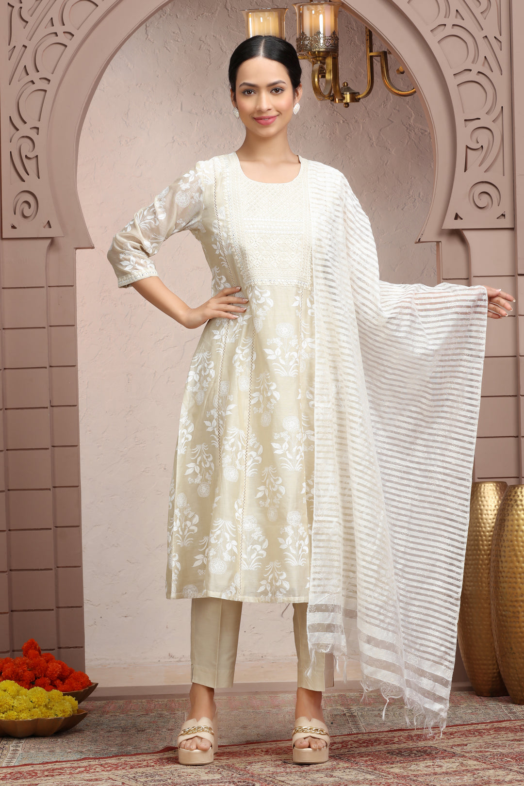 Looking for the perfect White Suit for Women? At Cotton Culture, we bring you elegant and easy-to-wear styles for every moment, be it a family function, office day, or festive gathering. Explore our collection of white suit designs in soft cotton, flowy rayon, rich chanderi, and graceful polysilk. From everyday looks to special days, our kurta pants suit set with dupatta comes in beautiful prints, A-line cuts, round necks, and V-necks, and find your perfect match.