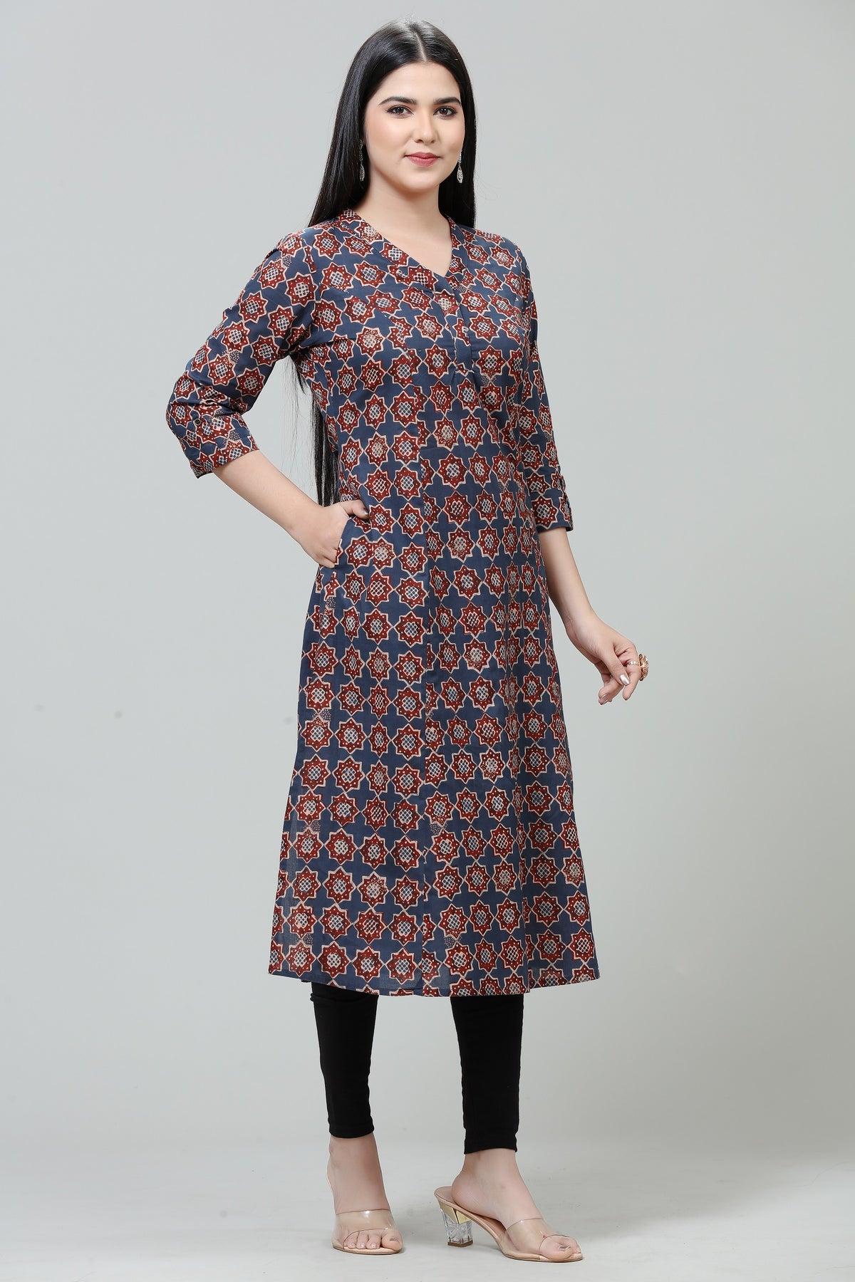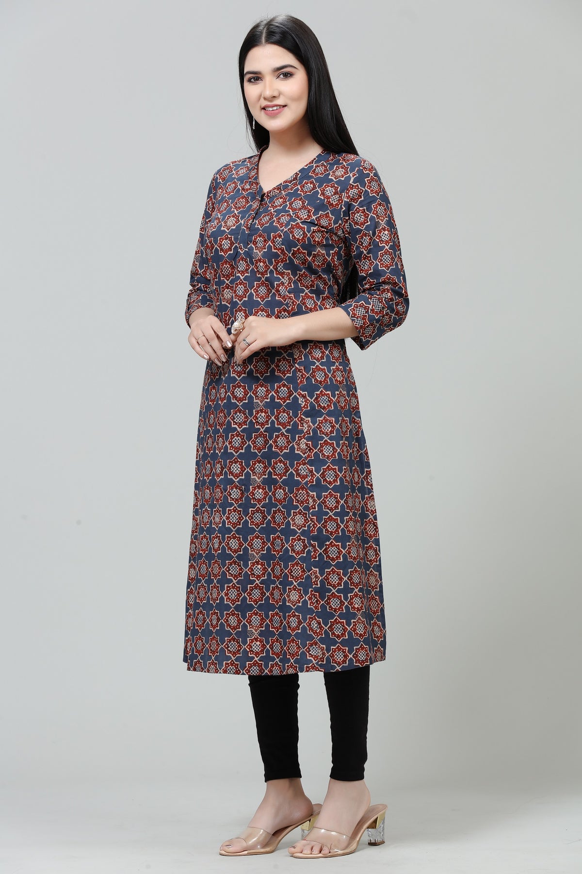 Cotton Culture brings this brown kurti is designed for both comfort and style, featuring a printed pattern on a soft cotton fabric. The cotton kurta has a calf-length design and a v neck, making it a versatile piece suitable for various occasions. This cotton printed kurti offers a flattering fit for different body types.