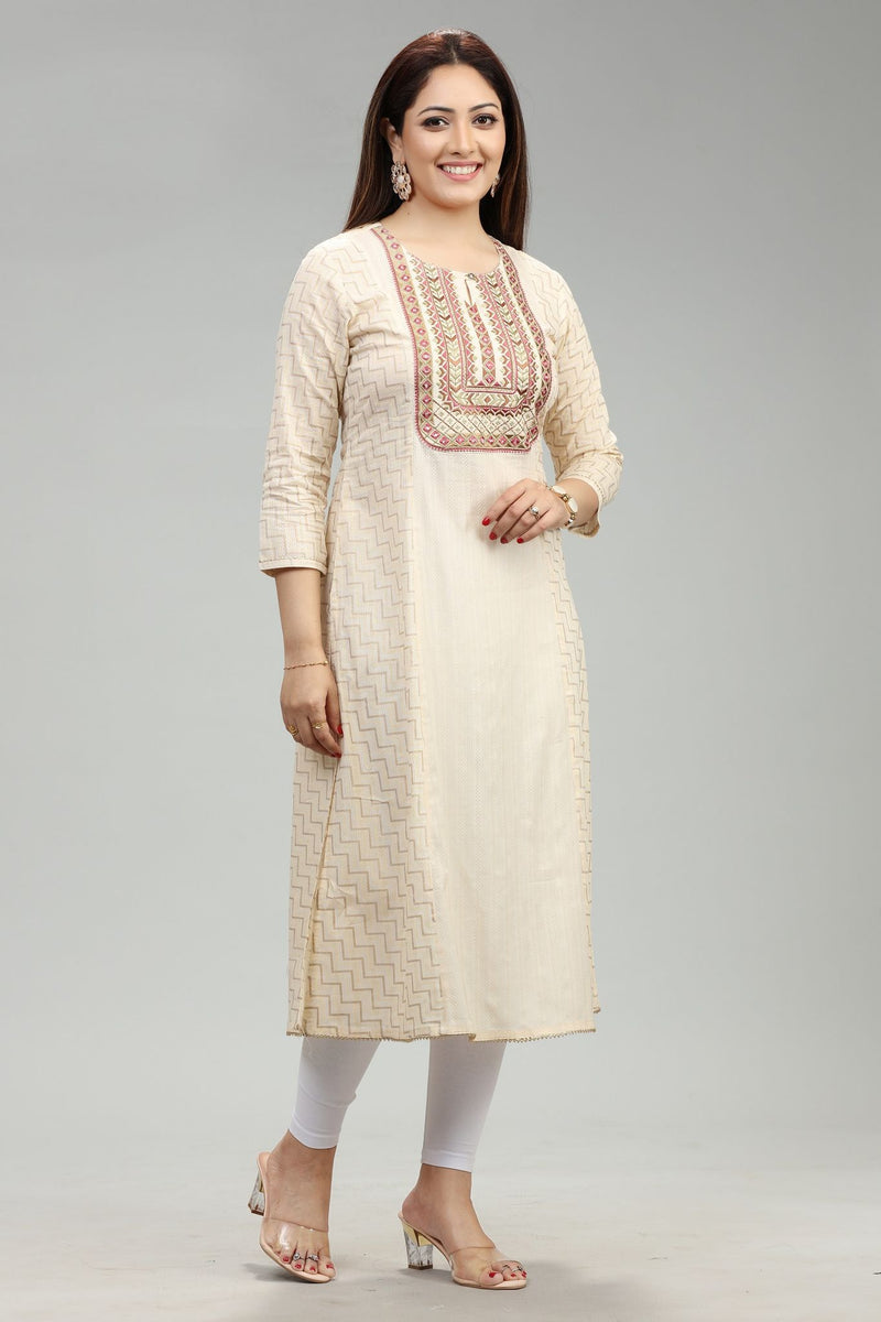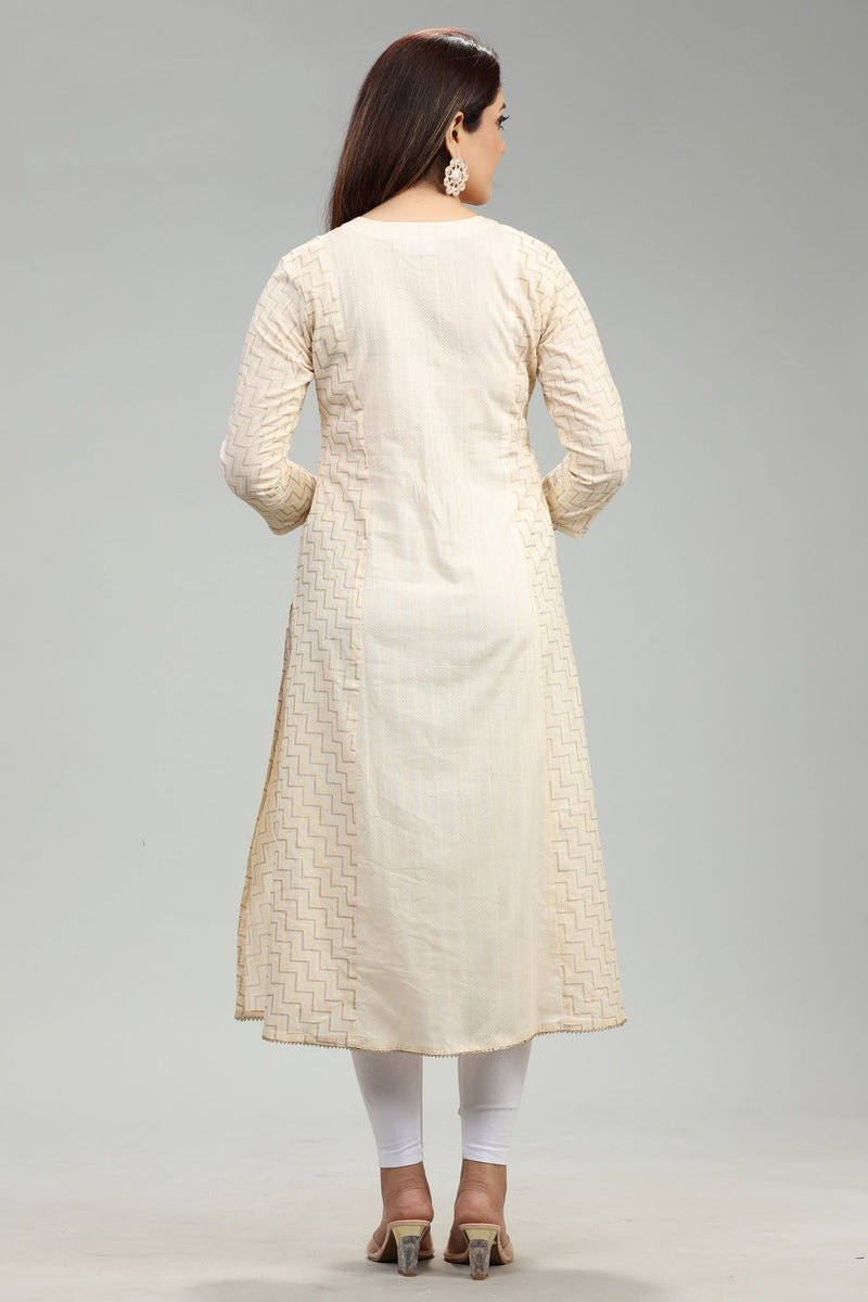 Womens Ethnic Wear featuring a high neck, three fourth sleeves and a regular fit. It is crafted from fine fabric.The model (height 5 ft 6 in) is wearing Size S
