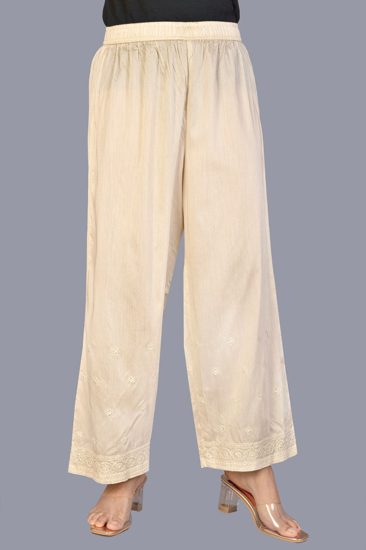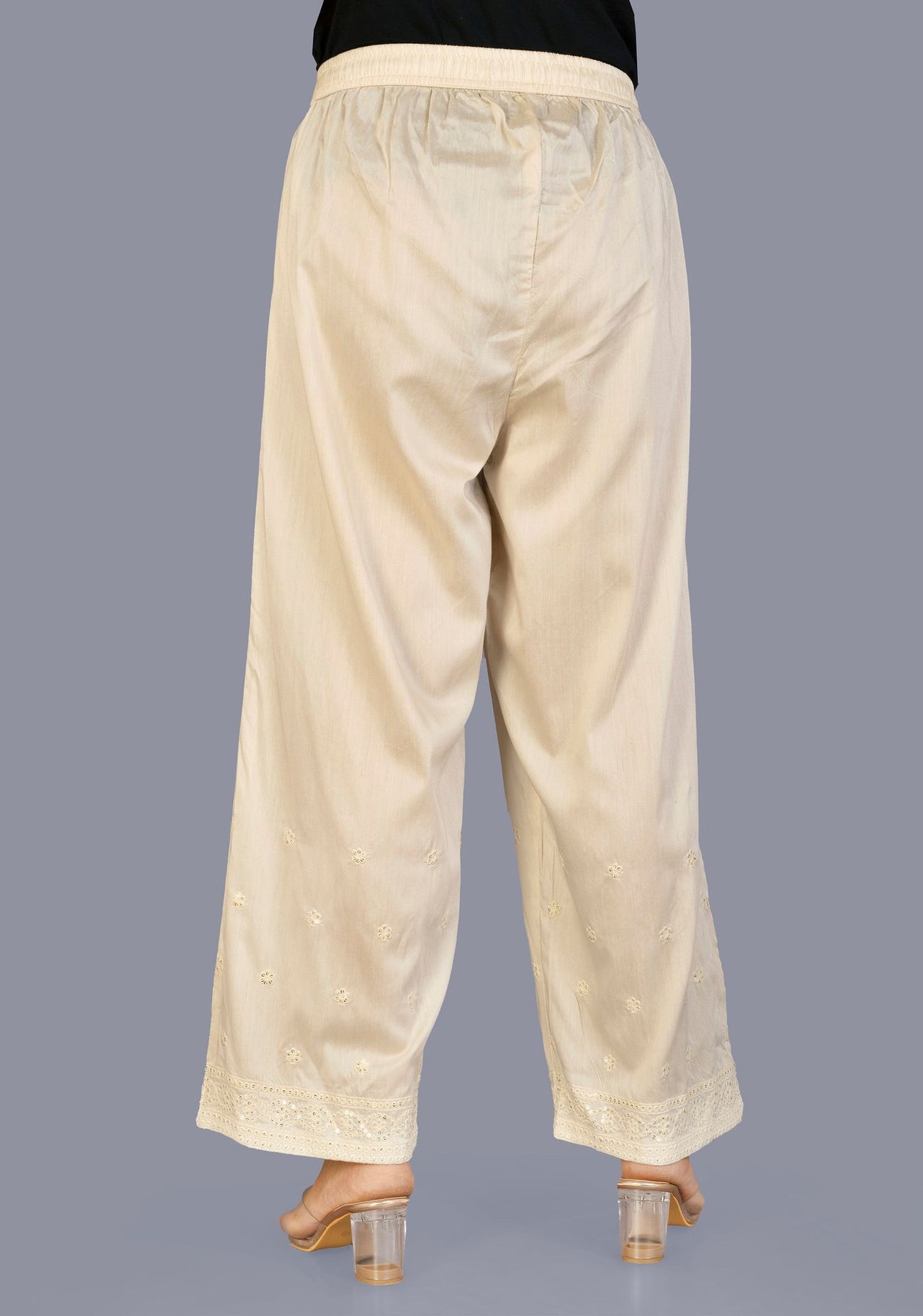 Effortlessly chic and comfortable, our Cream Cotton Embroidered Palazzo is the perfect addition to your wardrobe! Made from soft cotton and beautifully embroidered, it offers all-day wearability and a touch of elegance. Perfect for any occasion, this versatile palazzo will surely elevate your style.