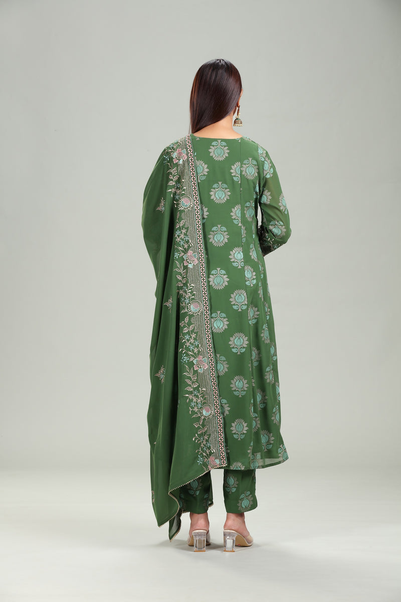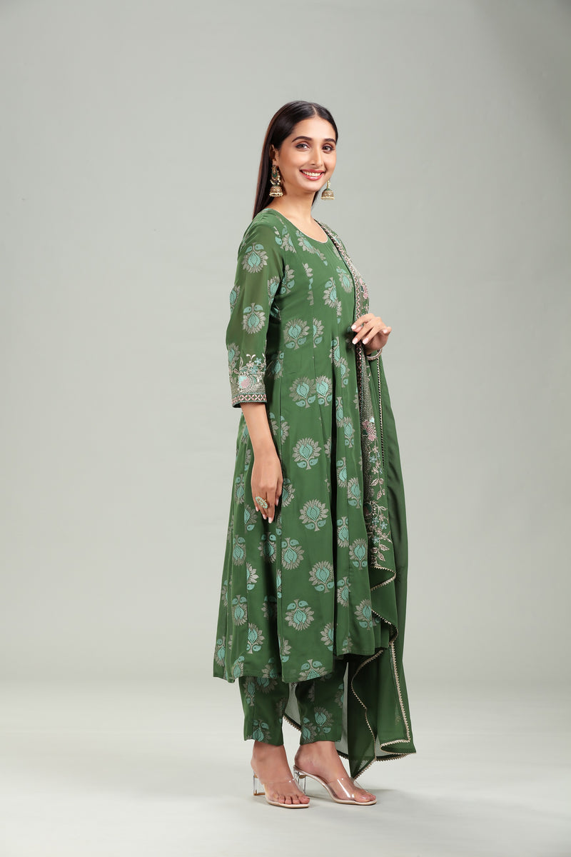 Green Georgette Yarndyed Anarkali Kurta Pant Suit Set