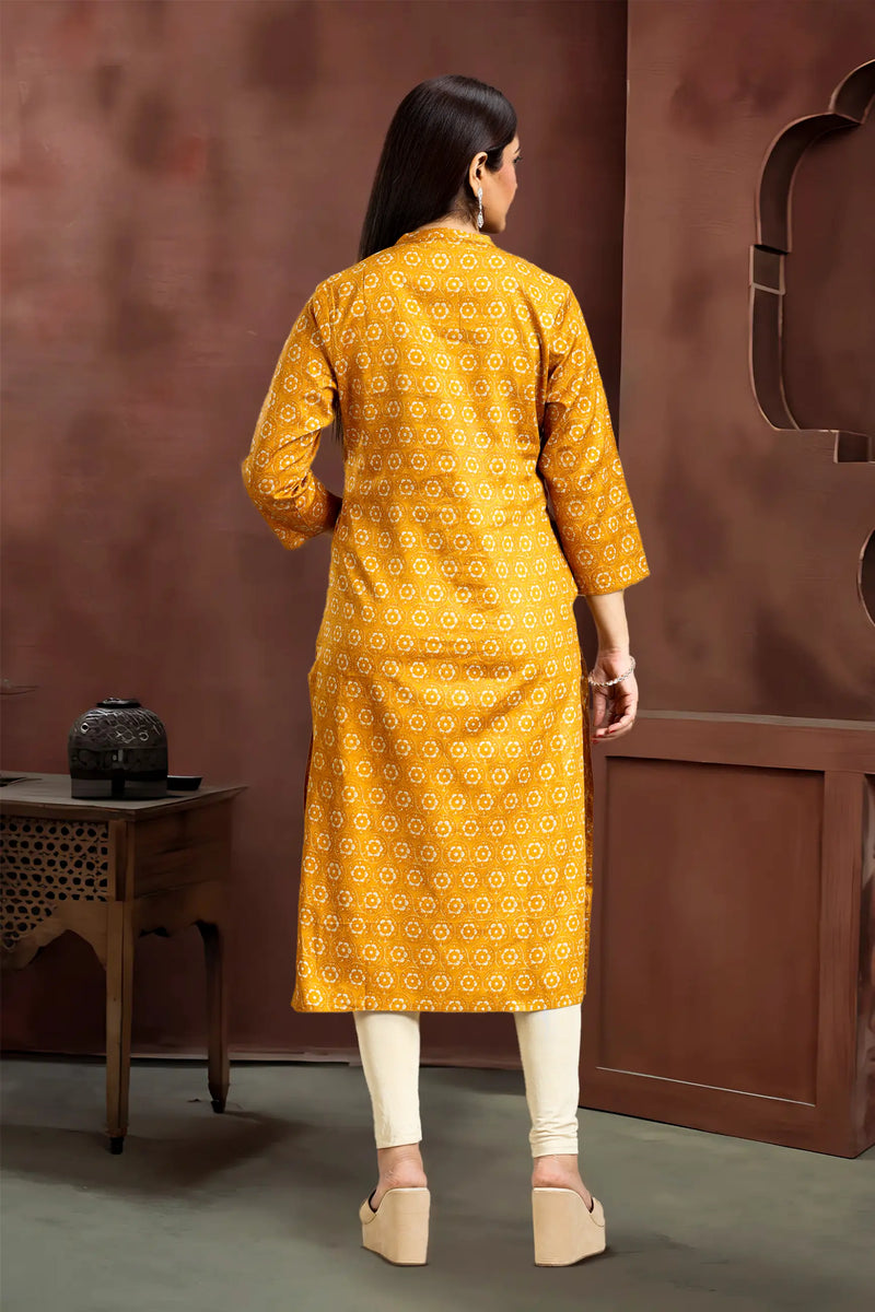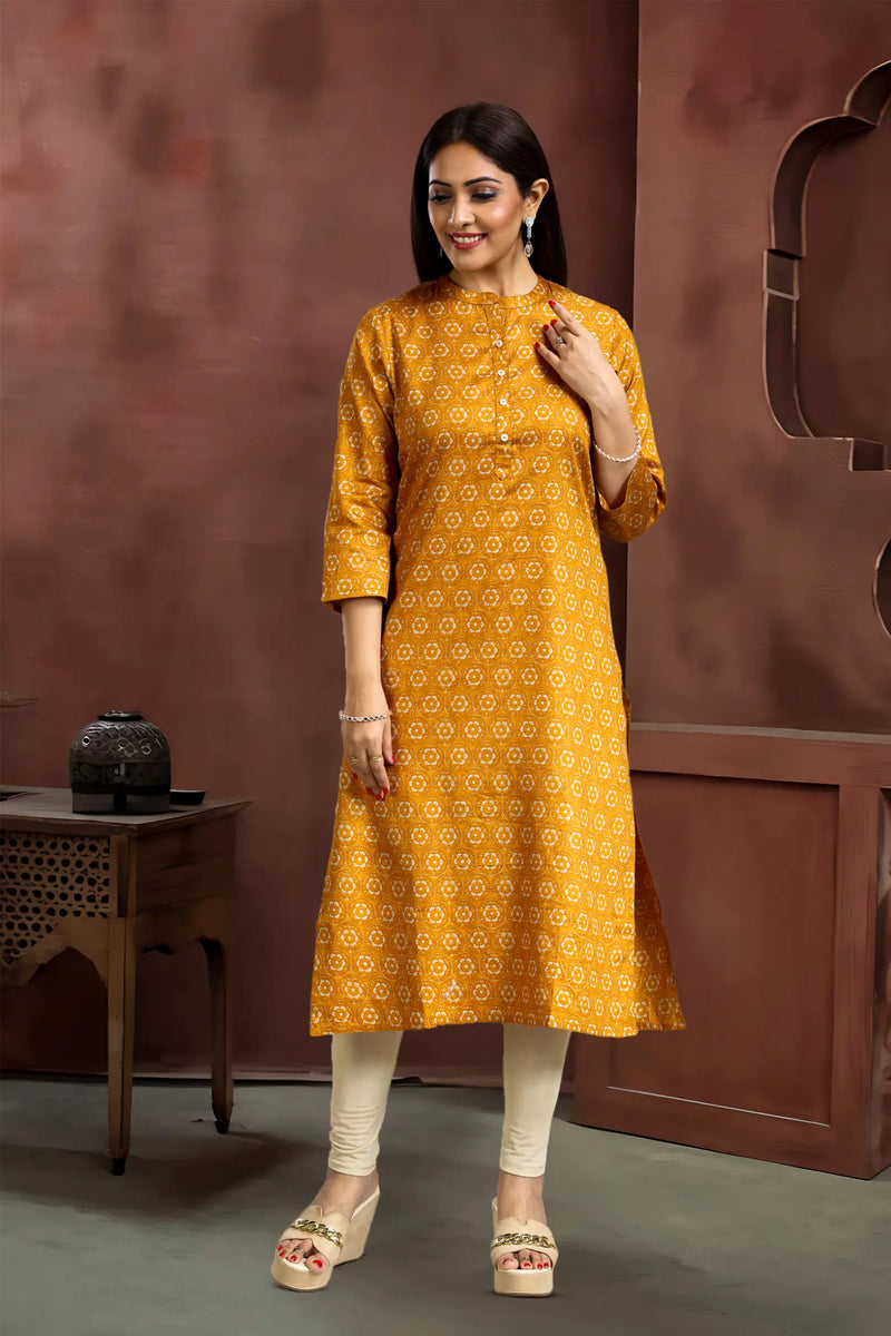 Mustard Roman Silk Straight Printed Kurta