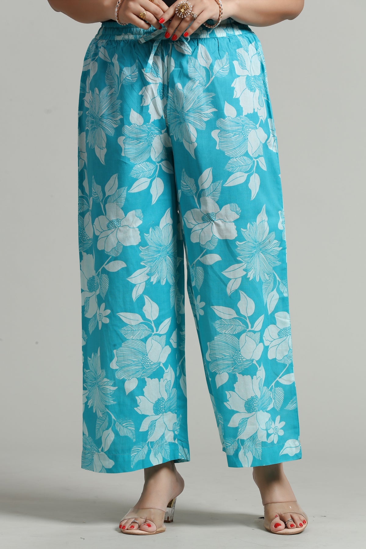 Step into effortless elegance with these Sky Blue Cotton Printed Palazzos for women. The vibrant print and soft cotton fabric offer ultimate comfort while adding a stylish touch to any casual or semi-formal look.