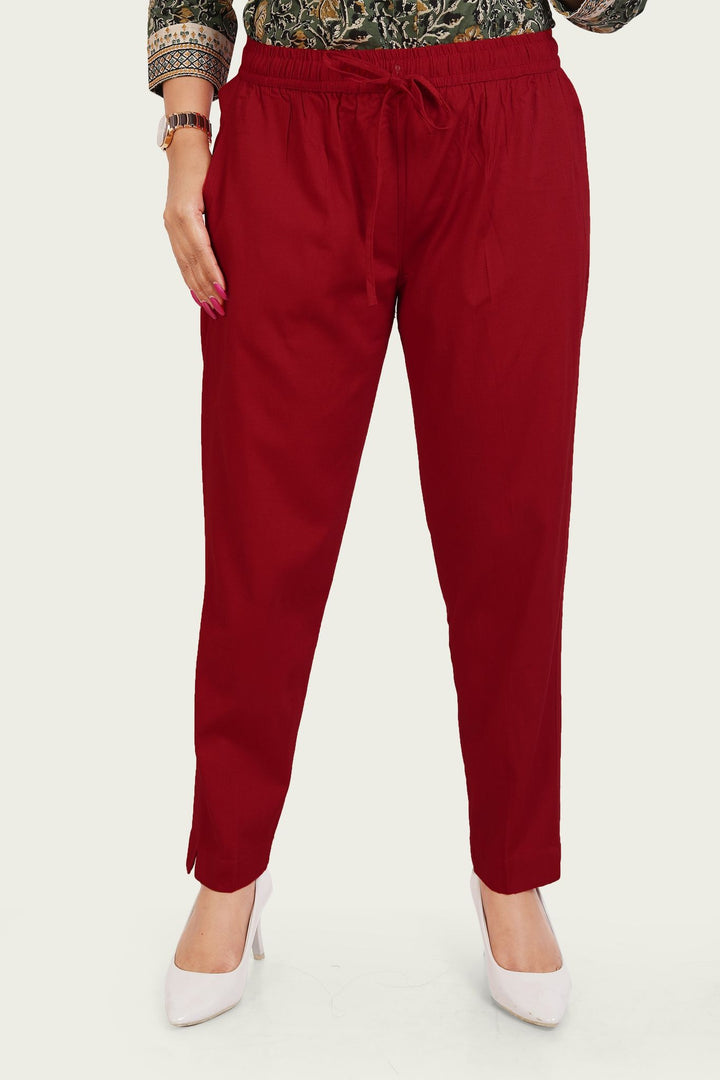 Unleash your style with our Maroon Cotton Lycra Pant! Made from high-quality fabric, these pants are both comfortable and stylish. Perfect for any occasion, they will elevate your outfit and make you stand out. Upgrade your wardrobe with our Maroon Cotton Lycra Pant today!